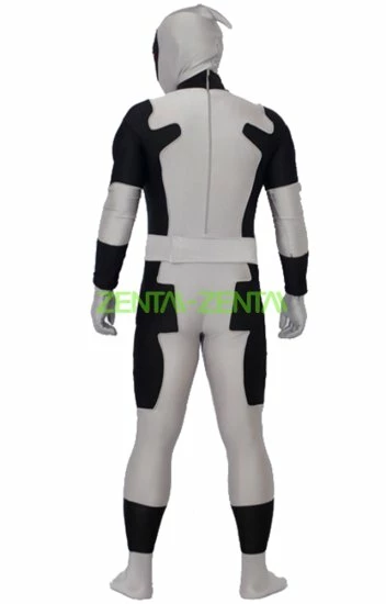 Design:Full body suit with mesh eyes,rubber logo on belt,padding muscle