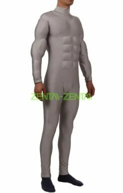 Grey Superman Costume | Printed Spandex Lycra With 3D Muscle Shading